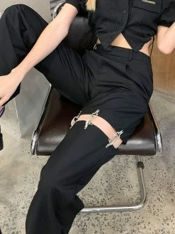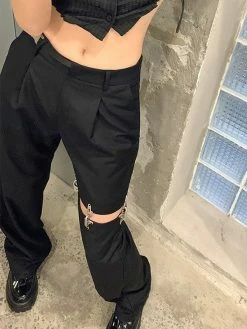 SKU: EDA0162BO002M Categories: Bottoms, Pants, Straight Leg Pants Tag: Black Belted Cutout Straight Leg Pants online