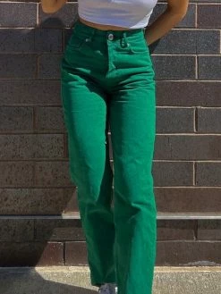 Description: Get some classic but stylish denim jeans for go-to outfits. These jeans have ankle-flare leg silhouette, it has metal button design to the back, features pockets patched, and with a button zip fly at front.