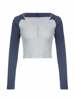 Description: These raglan-sleeve style knit tops are staple for prep schoolgirl outfits or retro y2k vibes. Crafted from cotton ribbed knit fabric, it has contrast panel long sleeves, and with stitched seam detail on the hood.