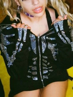 Description: Features fuzzy trim on the hood, with pompom decor and a metal zip fly to the front.