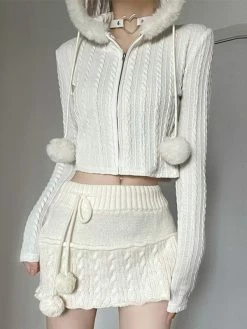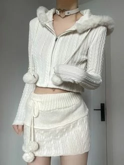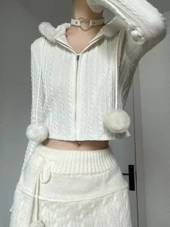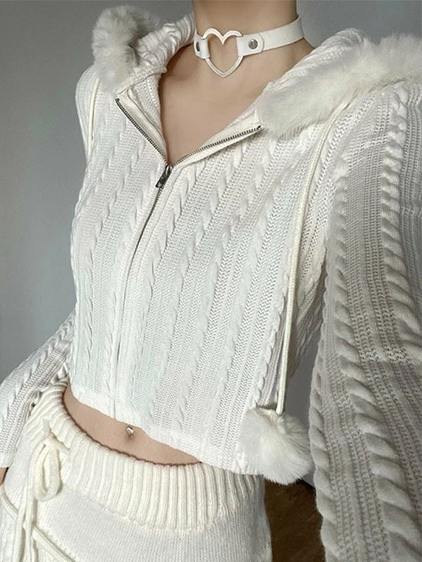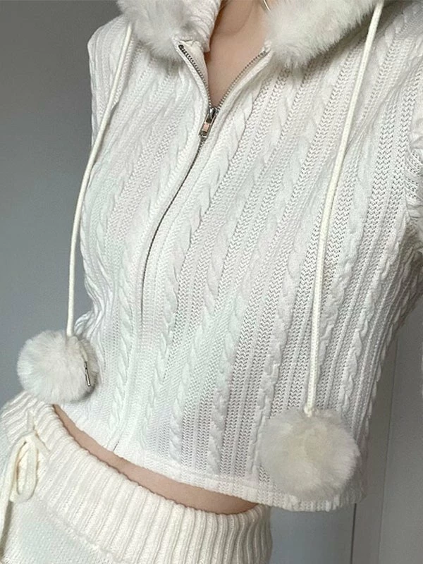 SKU: FCK0011TO002M Categories: Cardigan, Outerwear Tag: Cropped Fuzzy Trim Cable Knit Hooded Cardigan online