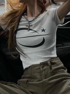 SKU: EDA0046TO002M Categories: Short Sleeves, Tops, Tops & Tees Tag: Galaxy Star White Baby Crop Top online