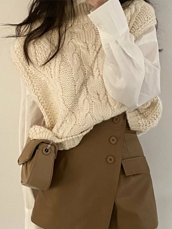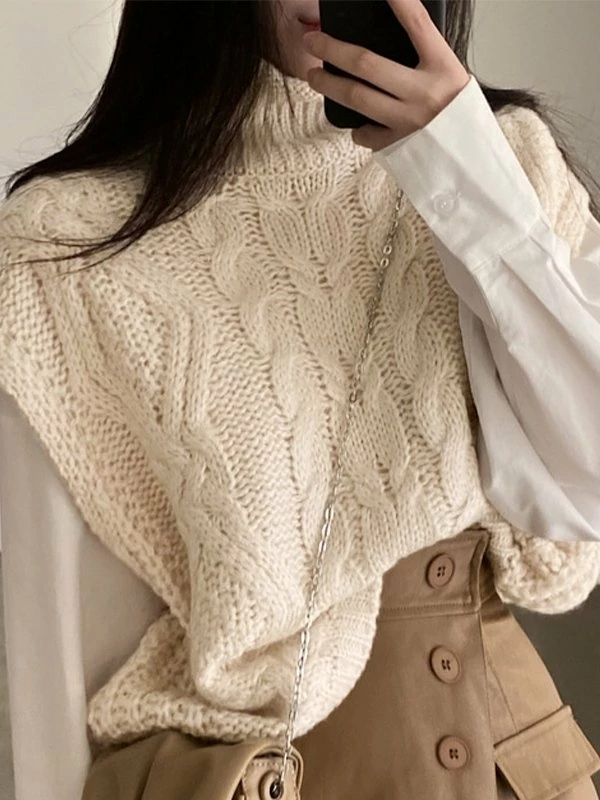 Be the first to review “Emmiol High Neck Cable Knit Sweater Vest” Cancel reply