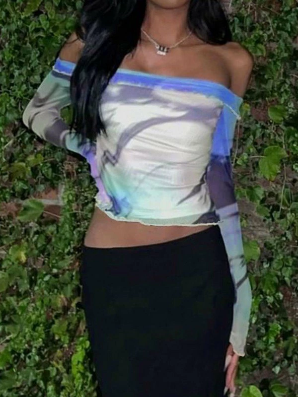 Emmiol Mesh Off Shoulder Long Sleeve Blouse