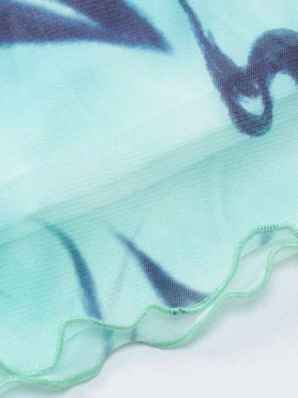 Description: Mesh tops are always on trend. These such cute tops are made from stretchy mesh fabric, with random abstract pattern print allover, and has lettuce edge design.
