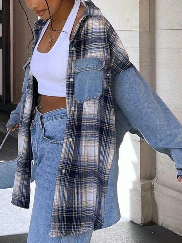 SKU: CBK0685OU007S Categories: Jackets & Coats, Outerwear Tag: Patchwork Checkered Denim Jacket online