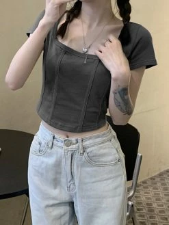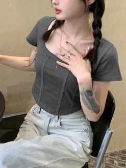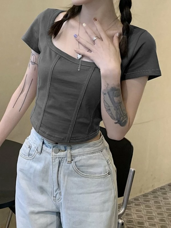 SKU: ECL0341TO001F Categories: Short Sleeves, Tops, Tops & Tees Tag: Seamed Short Sleeve Crop Top online