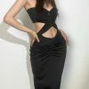 Description: Shaped with a racer back style, it has slash cutout with criss cross bandage detailing.