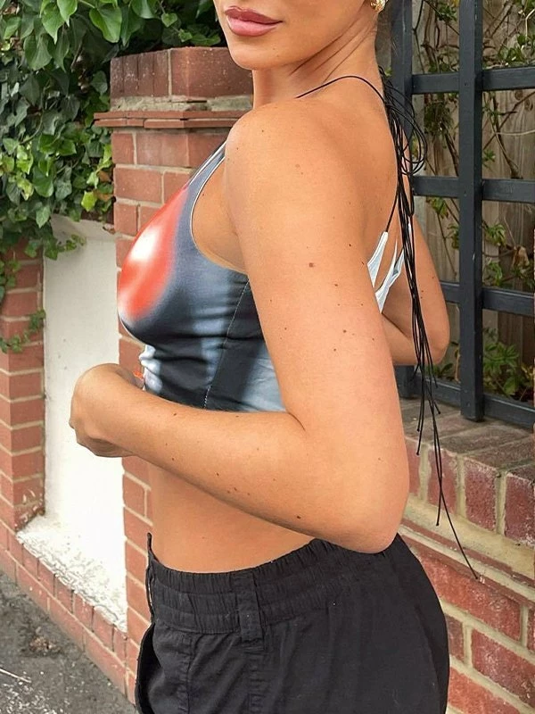 Description: Pull over this punk’d inspired cami top for night out vibes. Designed with an irregular neck style, features abstract tie-dye print, it has lace up shoulder straps, and cutout detailing at front & back.