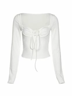 Be the first to review “Emmiol Tie Front White Ribbed Knit Crop Top” Cancel reply