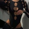 Description: This elegant but playful crop top is made from stretchy ribbed knit fabric, features paneled design on the chest, with keyhole at center front, and has an adjustable tie neck which can be worn in halter style.
