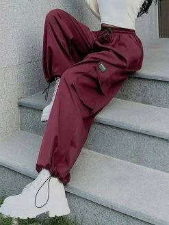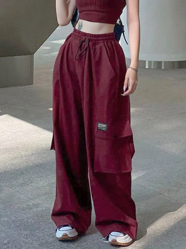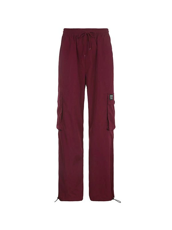 Description: Shaped to a relax silhouette, these trendy y2k cargo pants features cargo pockets patched, designed with drawstring detail at waist & cuffs for a flattering fit.